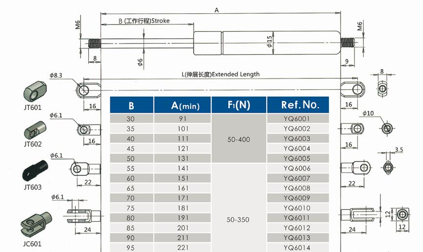 注:由于氣彈簧是非標(biāo)準(zhǔn)的,以上僅為型號(hào)的一部分。我們可以根據(jù)客戶的要求定制。